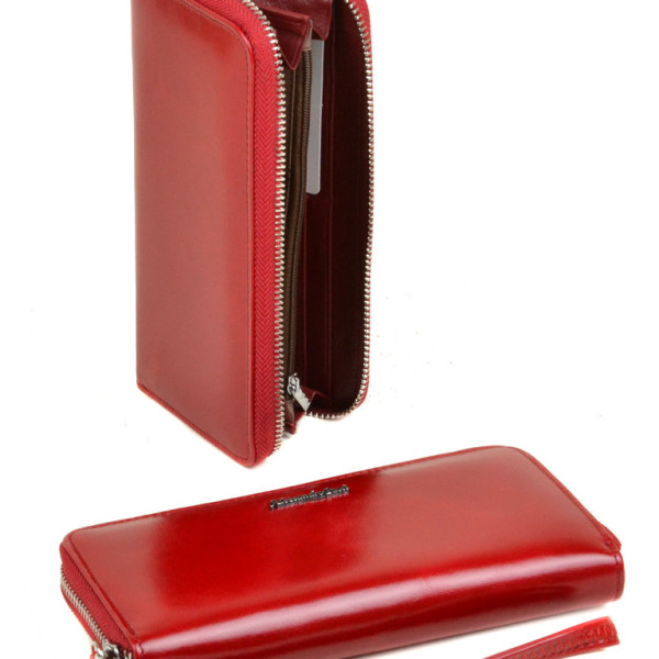 Великий жіночий гаманець із натуральної телячої шкіри преміумкласу Гаманець закривається на блискавку в комплекті пензлевий ремінець для зручності.