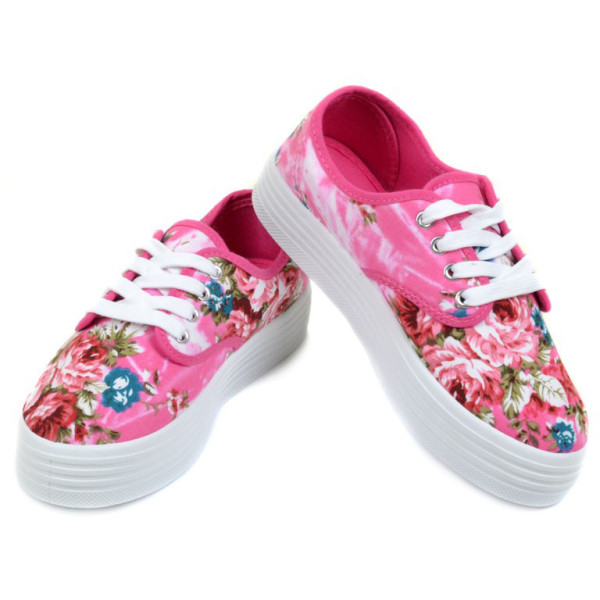 Кеди жіночі з високою підошвою, квітковий принт фуксія, 36-37р
