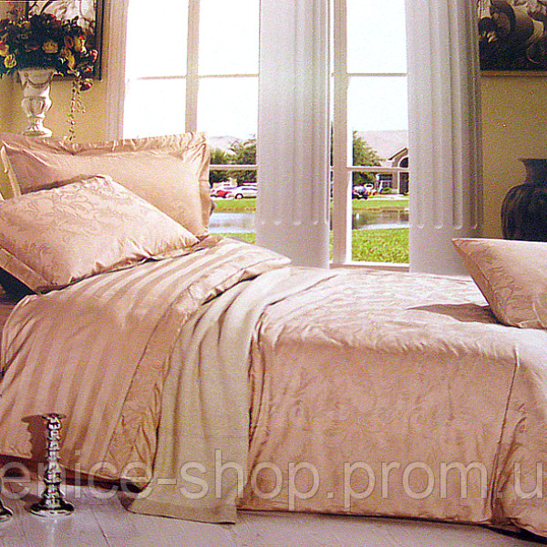 Комплект постільної білизни ТМ Le-Vele жакард. Матеріал-сатин (100% бавовна). Підковдра 200-220 см. Простирадло 240-260 см. Наволочки 50-70+5 см -2 шт. Наволочки 50-70-2 шт. Le Vele — супова білизна чудової якості. На сьогодні постільна білизна з жакарду має особливу популярність. Ця тканина з'явилася не так давно, і являє собою матеріал, де були вдосконалені властивості бавовни. Через те, що під час виготовлення жакарду використовується незвичайне плетіння нитки, тканина знайшла високу міцність і гладкість. Це ідеально підходить для виробництва постільної білизни, тому господині всього світу віддають перевагу купувати постільну білизну з жакардового сатину. Жакард чудово підходить для чутливої шкіри, оскільки має протиалергенні властивості та дарує шкірі відчуття м'якості та захищеності. Цей факт особливо важливий під час сну, коли організм найбільш захищений. Жакардова постільна білизна є просто знахідкою для людей, які схильні до шкірних подразнень, позаяк простирадла з жакарду набагато ніжніша, ніж з іншої тканини. Вам легко буде зробити покупку не тільки завдяки легкому замовленню та дистанційному замовленню, а й тому, що всі моделі можна переглянути в каталозі. Лише коли Ви виберете потрібну Вам модель, купуйте комплект постільної білизни Le Vele. Якість ви відчуєте відразу ж, як уперше випробуєте новий комплект. Ніжна сатинова тканина дарує приємні відчуття під час відпочинку, занурюючи в царство сновидінь. Зверніть увагу, ідеальним доповненням до постільної білизни LeVele послугують ковдра Le-Vele, а також фірмові подушки. Вартість, яку Ви побачите в нашому магазині, це результат турботи про клієнт! Ви ніде більше не знайдете такої вигідної цінової політики, і зможете купити постільну білизну, яка давно підтвердила свою якість на світовому текстильному ринку.