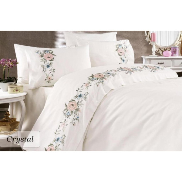 Комплект постільної білизни ранфорс з вишивкою MAYS Crystal V04 євро
