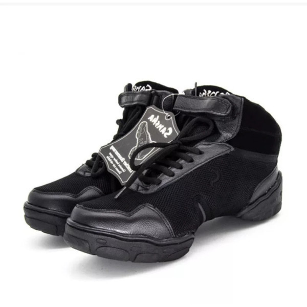 Сникеры для танцев, кроссовки для современных танцев из натуральной кожи и сетки, цвет черный.