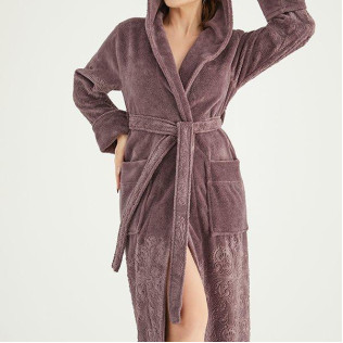 Nusa Халат жіночий із капюшоном Nusa 8655 коричневий