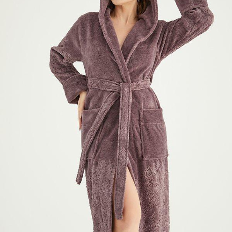 Nusa Халат жіночий із капюшоном Nusa 8655 марсала