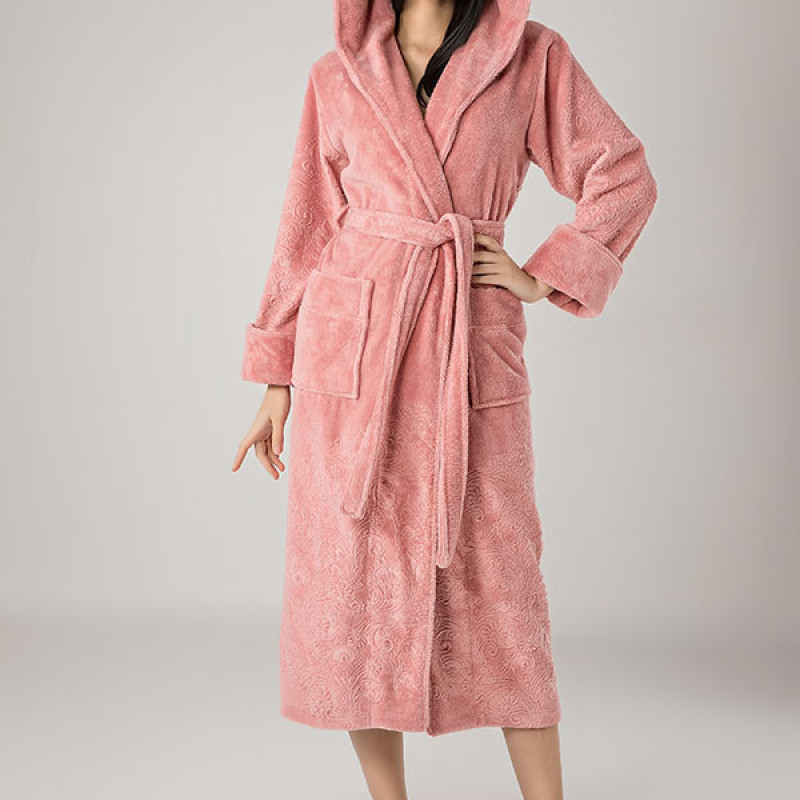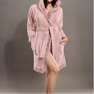 Nusa Халат жіночий із капюшоном Nusa 8655 пудра