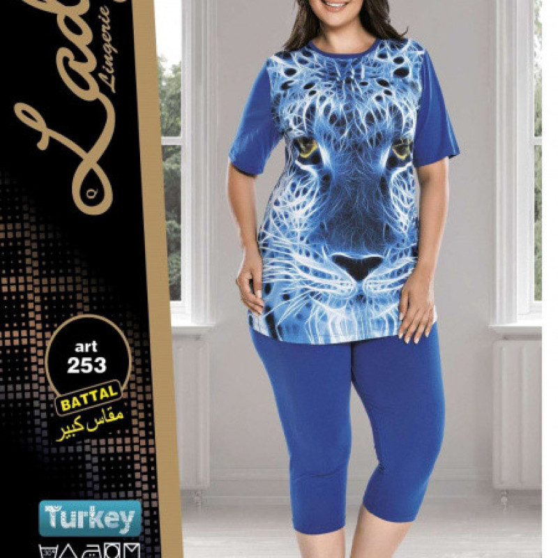 Жіночий трикотажний комплект: туніка з капрі дизайн леопард, батал