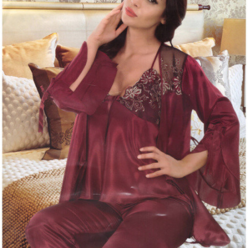 Жіночий шовковий комплект зі штанами (пеньар), розмір M