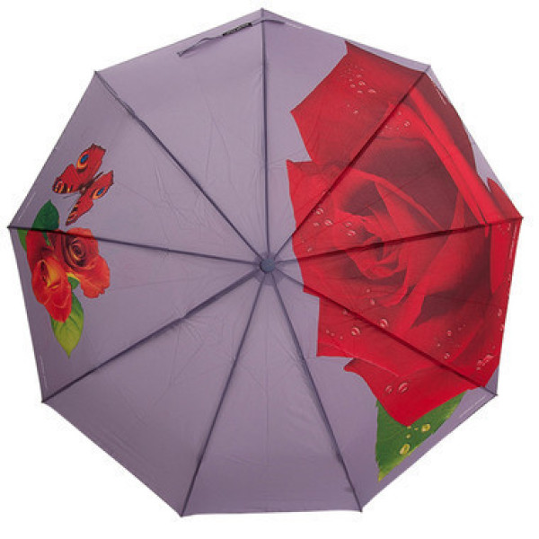 Парасолька жіноча з трояндою автомат 9 спиць міцна з вітрозахистом.