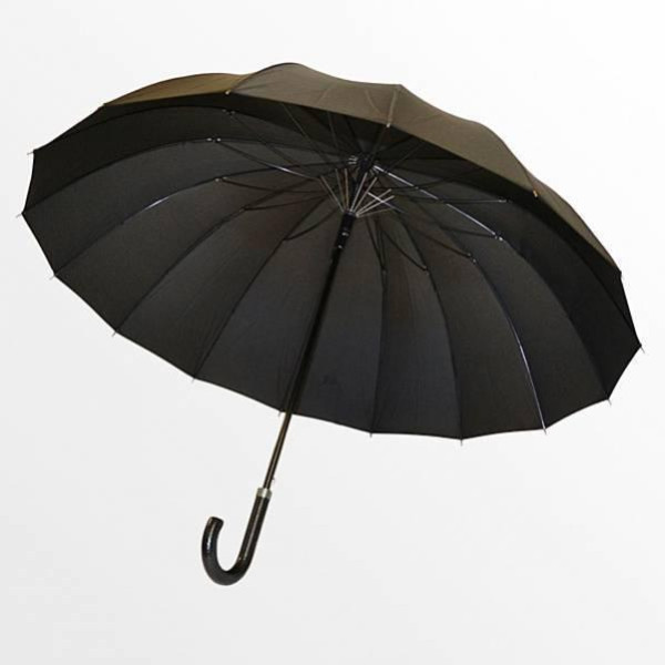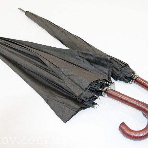 Парасолька-тростина напівавтомат 16 спиць. Довжина 106 см, сталевий стрижень із дерев'яною ручкою. Купол 133 см.