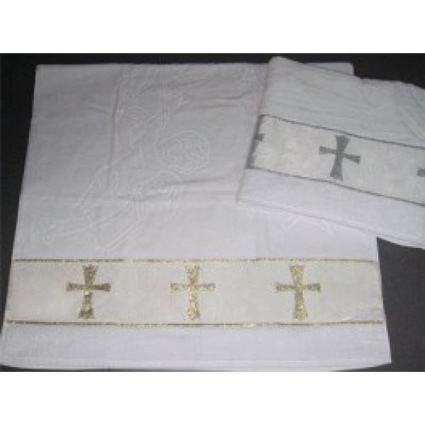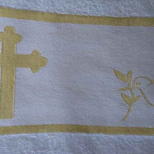 Полотенце для крещения. Крыжма махровая с жаккардовым узором и вышивкой золотом