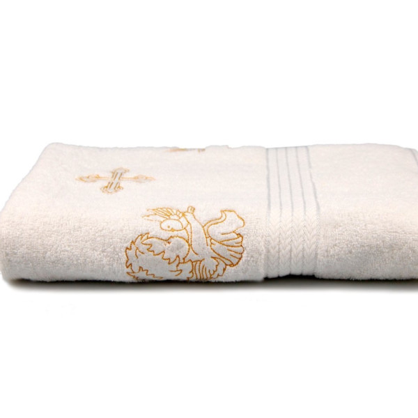 Полотенце махровое крестильное Крыжма, 70х140см, 550г/м2 (белое с золотом)