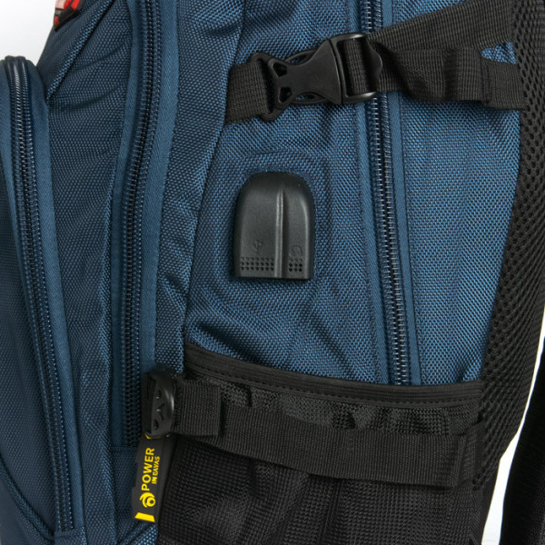 Міський рюкзак "Power in Eavas", щільна спинка з м'якими вставками. Усередині рюкзака розташовані два відділення на блискавці. У першому відділенні розташована кишеня-органайзер, у второму відділенні є кишеня для ноутбука та кишеня для телефона. Також із другого відділення виведені USB і кабель для навушників на зовнішню стінку рюкзака. На фасаді розташована кишеня на блискавці. Зовні на бічних сторонах рюкзака кишені-сітки для пляшок води об'ємом 0,5 літра. Плечові лямки регулюються за довжиною. Розмір (см): 42*34*18