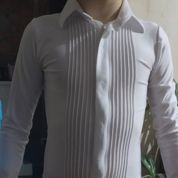 Чоловіча сорочка для танців (комбідрес) з тканини біфлекс, колір: білий у наявності, чорний або інші кольори під замовлення, термін виготовлення 5-10 днів. Цю модель сорочки можна замовити з трикотажного полотна (95% бавовна, 5% еластан).