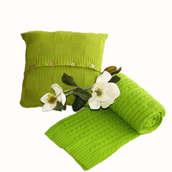 Стильна яскраво-зелена в'язана наволочка на ґудзиках