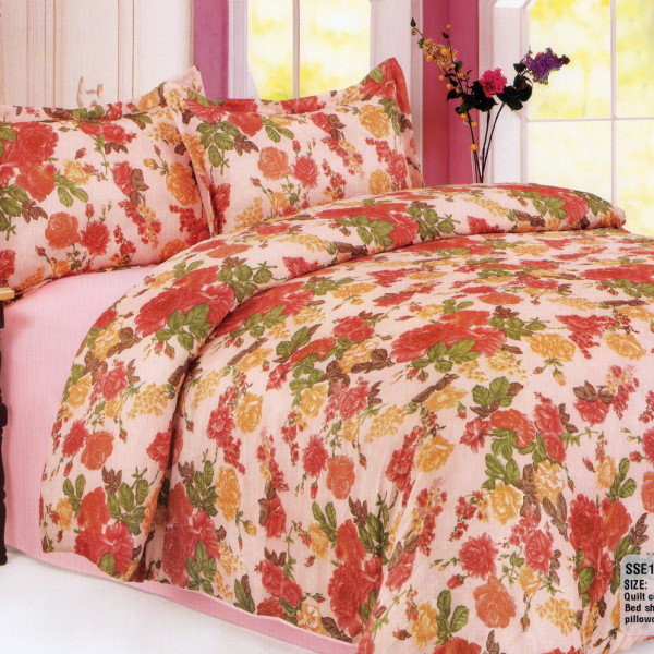 Стильний комплект постільної білизни "Shining Star" евроразмер. Шикарна постільна білизна в стилі прованс із сатину та креш-сатину ніжно-рожевий у поєднанні з квітковим принтом.