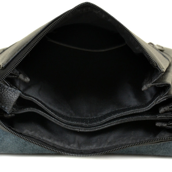 Чоловіча сумка-планшет Dr.Bond. Клапан із натуральної шкіри. Під клапаном містяться три окремих відділення, які закриваються на блискавку. Усередині відділень є бічна відкрита кишеня та кишеня на блискавці. На фасаді та на зворотному боці є кишені на блискавці. Регульований плечовий ремінь і знімна ручка в комплекті. Розмір (см.) 21*25*5
