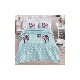 Покривало стьобане з наволочкою Eponj Home — LovemeCat ментоловий 160*220