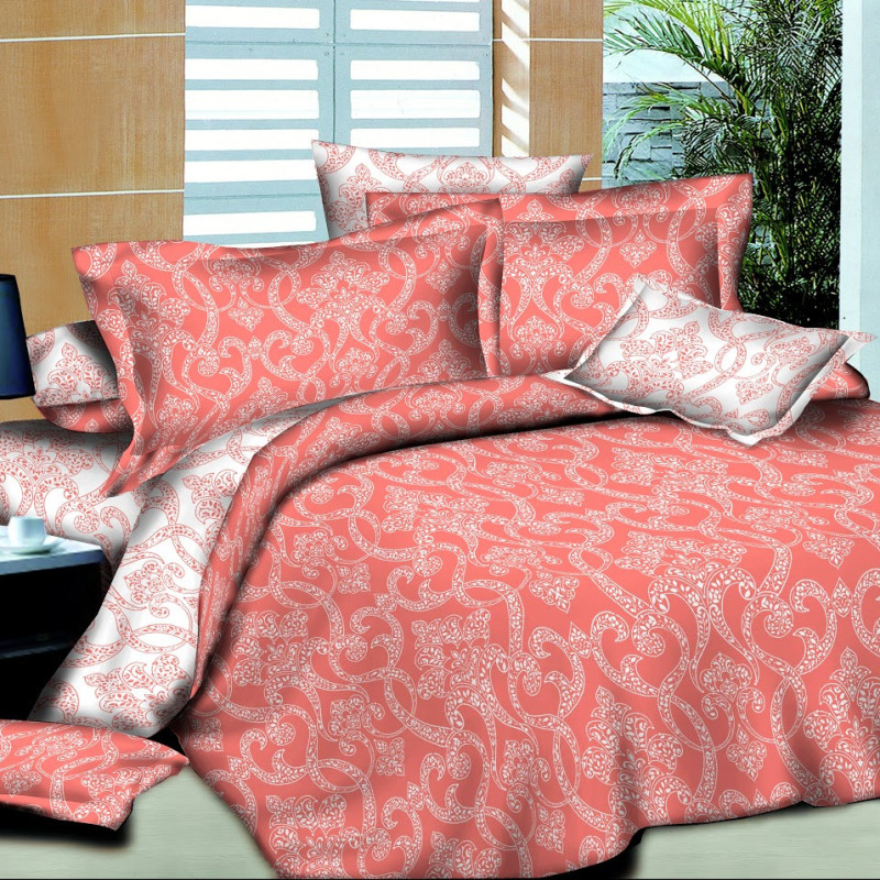 Полуторний комплект постільної білизни Бязь преміум УЗОР кораловий Е (нав 50х70 – 2 шт)