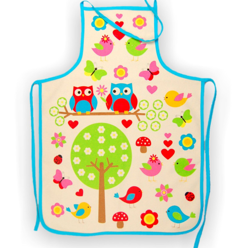 Махровий кухонний фартух Веселі птахи синій