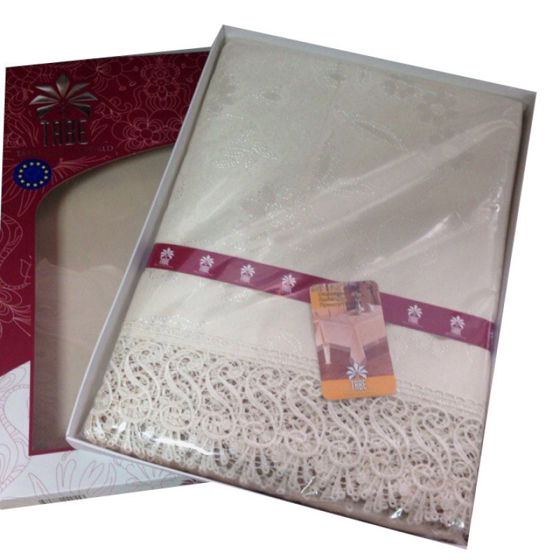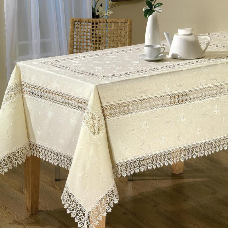 Вишукана скатертина з французькими мереживами на розкладний стіл кольору Айвері