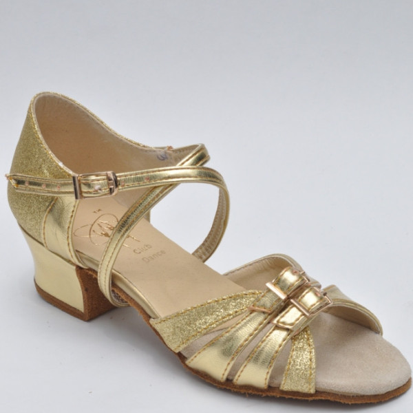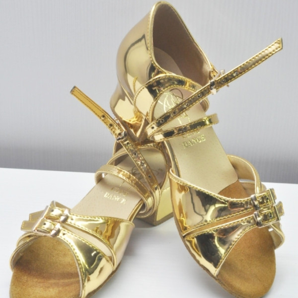 Туфлі бальні для дівчинки золоті дзеркальні, блок підбор