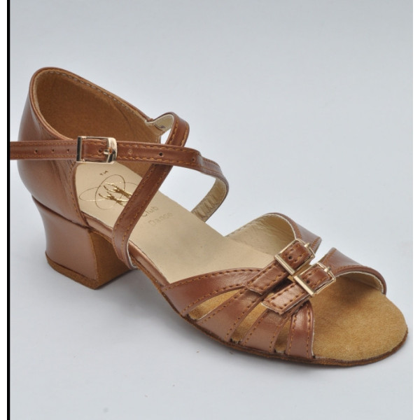 Туфли танцевальные для девочки на блок-каблуке бежевые сатин 24-25
