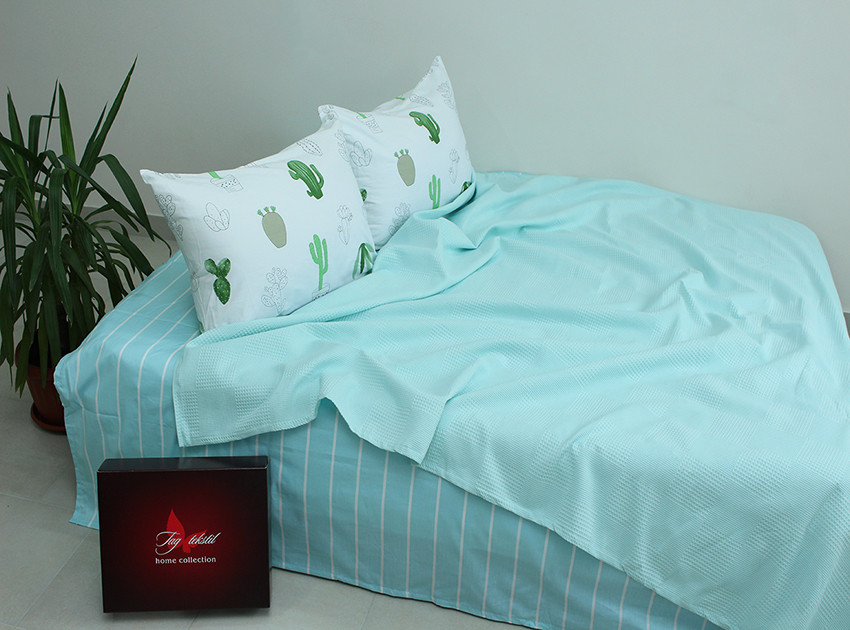 Яскравий і креативний літній комплект постільної білизни без підодіяльника з простирадлом-покривалом піке.
