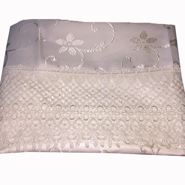Вишукана скатертина з французькими мереживами на розкладний стіл кольору Айвері