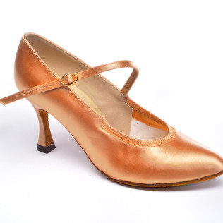 Туфлі для танців жіночі Стандарт сатин бежевий каблук 5 або 7 см з регуляторами.