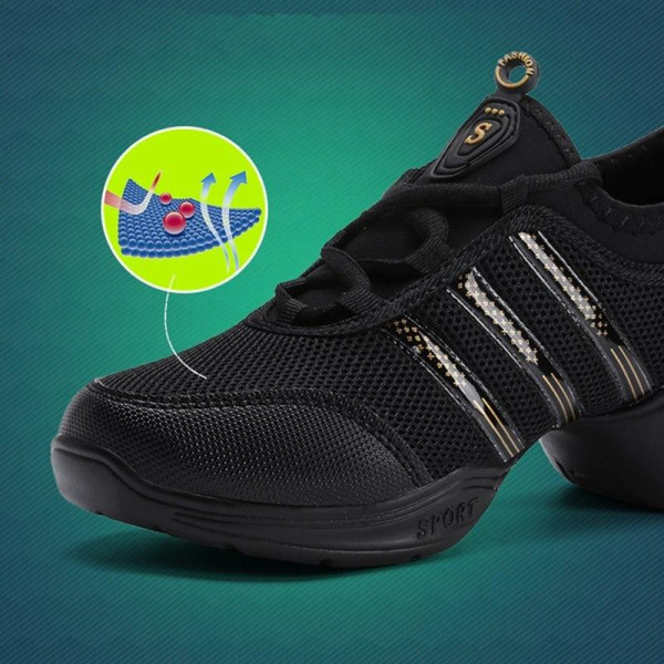 Танцювальна взуття (снікери) призначена для сучасних танців. Кросівки (снікери, джазовки) виготовлені зі штучної шкіри та якісної сітки. Взуття має гнучку та м'яку підошву, на нозі практично не відчувається. Кросівки легкі, повітропроникні та дуже комфортні. У такому взутті заняття танцями приноситимуть тільки успіх і радість!